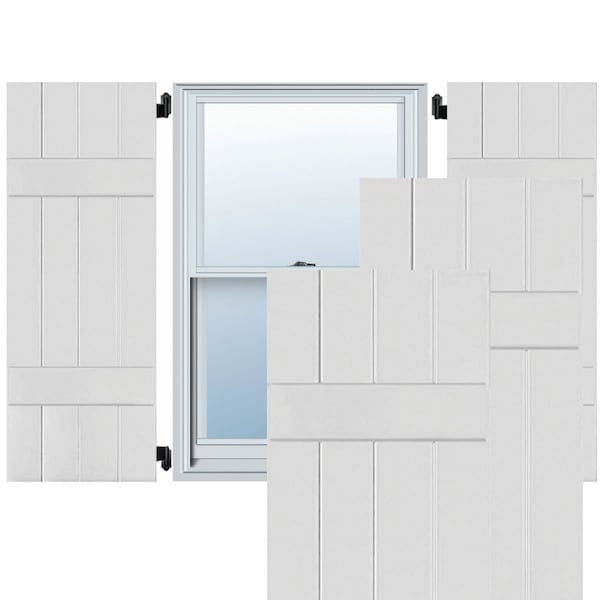 15"W x 61"H Exterior Four Board (2 Batten) Real Wood Pine Board-n-Batten Shutters, Primed PR