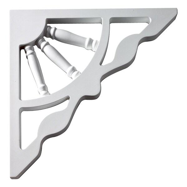 A design featuring three spindles makes the gable bracket stand out when you want an accent with much character. Gracefully curving forms finish the design. The gable bracket is perfect for accenting shelving units, kitchen cabinetry, and more. Our selection of brackets does the job when you want to enhance your home with the little details that often make all the difference when it comes to decor. The gable bracket is made of durable, lightweight urethane. Our brackets are suitable for both indoor and outdoor projects. They are finished in white, and they take paint well.