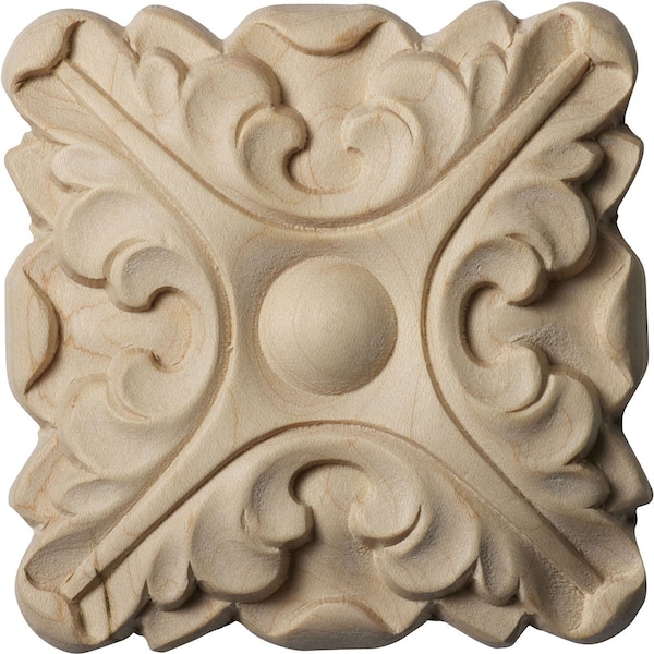 3 1/2"W x 3 1/2"H x 5/8"P Acanthus Square Rosette, Alder