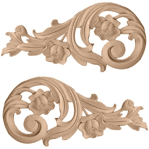 9 3/4"W x 4 3/4"H x 3/4"D (Each Side) Medium Rose Scrolls (Pair), Rubberwood PR