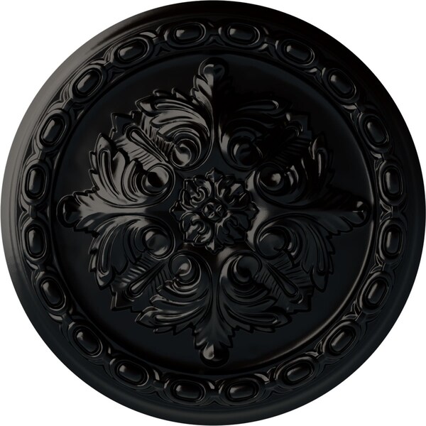 Acanthus Ceiling Medallion, Hand-Painted Jet Black, 11 3/8"OD x 2"P