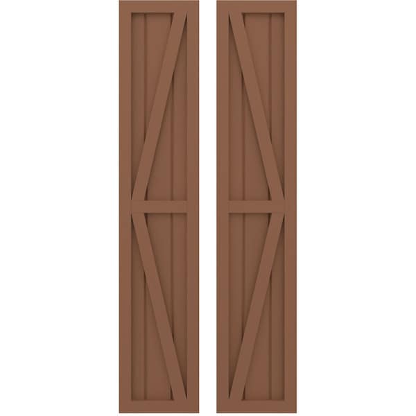 Americraft 3-Board Wood 2 Equal Panel Frmd Board-n-Batten Shutters w/Dbl Z-Bar, ARW102BF311X77BTH, PR