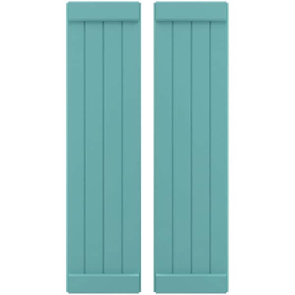 Americraft 4-Board Exterior Wood Joined Board-n-Batten Shutters w/ End Batten, ARW103BB414X77PTH, PR