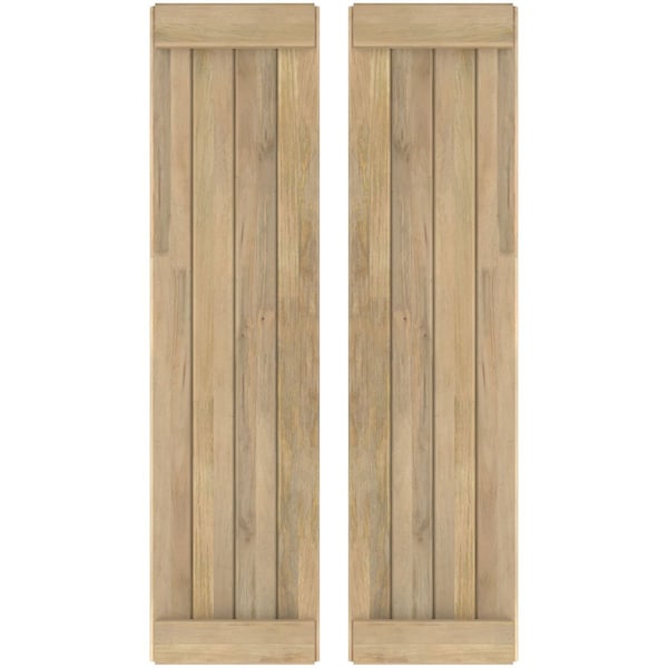 Americraft 4-Board Exterior Wood Joined Board-n-Batten Shutters w/ End Batten, ARW103BB414X77UNH, PR