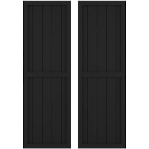 Americraft 5-Board Exterior Wood 2 Equal Panel Framed Board-n-Batten Shutters, ARW101BF518X77BLH, PR
