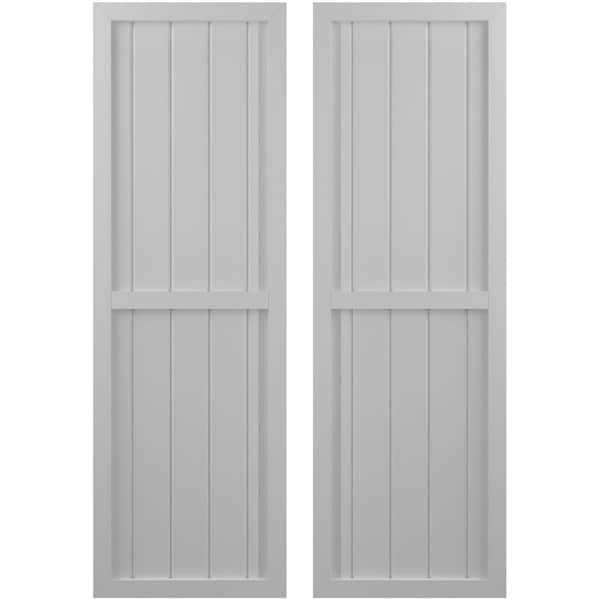Americraft 5-Board Exterior Wood 2 Equal Panel Framed Board-n-Batten Shutters, ARW101BF518X77PRH