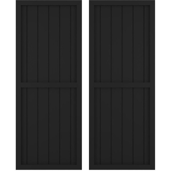 Americraft 6-Board Exterior Wood 2 Equal Panel Framed Board-n-Batten Shutters, ARW101BF621X77BLH, PR