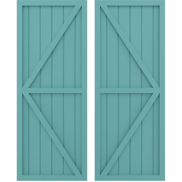 Americraft 6-Board Wood 2 Equal Panel Frmd Board-n-Batten Shutters w/Dbl Z-Bar, ARW102BF621X77PTH, PR