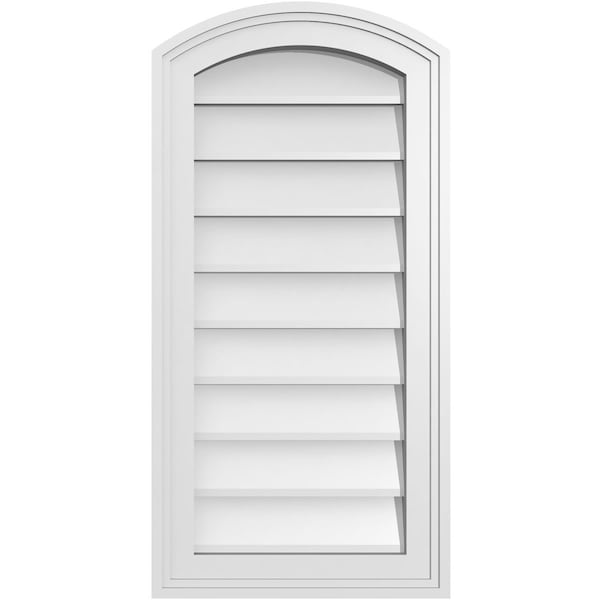 Arch Top Surface Mount PVC Gable Vent: Functional, w/ 2"W x 1-1/2"P Brickmould Frame, 14"W x 28"H