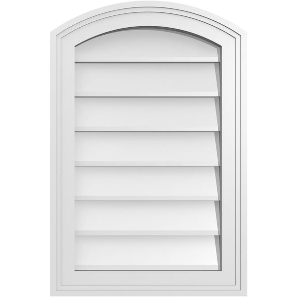 Arch Top Surface Mount PVC Gable Vent: Functional, w/ 2"W x 1-1/2"P Brickmould Frame, 16"W x 24"H