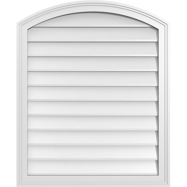 Arch Top Surface Mount PVC Gable Vent: Functional, w/ 2"W x 1-1/2"P Brickmould Frame, 28"W x 34"H