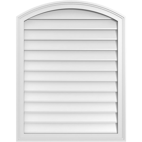 Arch Top Surface Mount PVC Gable Vent: Functional, w/ 2"W x 1-1/2"P Brickmould Frame, 28"W x 36"H