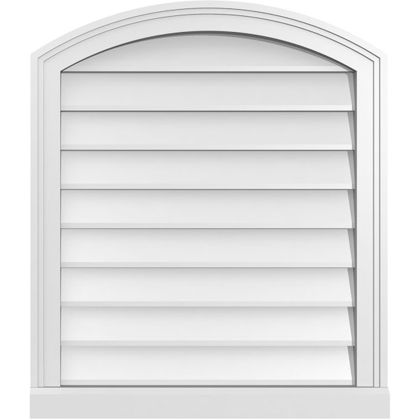 Arch Top Surface Mount PVC Gable Vent: Functional, w/ 2"W x 2"P Brickmould Sill Frame, 24"W x 28"H
