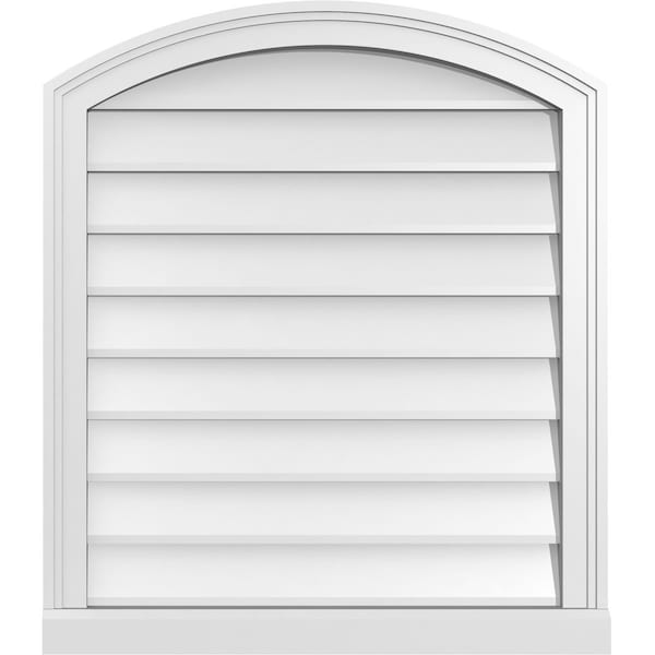 Arch Top Surface Mount PVC Gable Vent: Functional, w/ 2"W x 2"P Brickmould Sill Frame, 26"W x 30"H