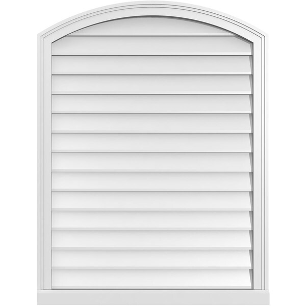 Arch Top Surface Mount PVC Gable Vent: Functional, w/ 2"W x 2"P Brickmould Sill Frame, 32"W x 42"H