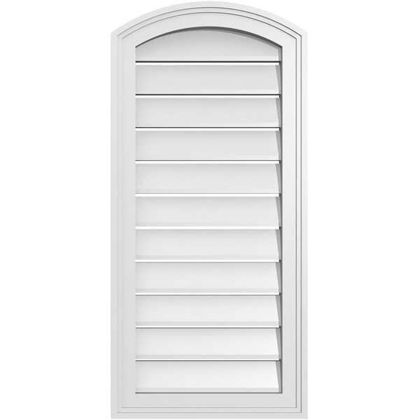 Arch Top Surface Mount PVC Gable Vent: Non-Functional, w/2"W x 1-1/2"P Brickmould Frame, 16"W x 32"H