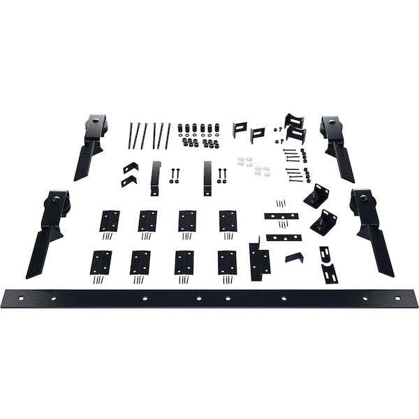 Barnfold J-Strap 4-Door Hardware Set for 1 1/4" to 1 3/8" Doors with 64" Track, Dark Gray