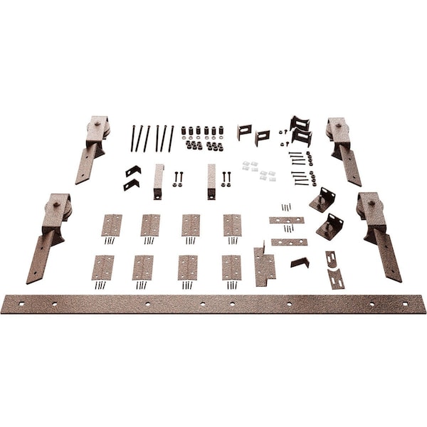 Barnfold J-Strap 4-Door Hardware Set for 1 1/4" to 1 3/8" Doors with 84" Track, Copper Vein