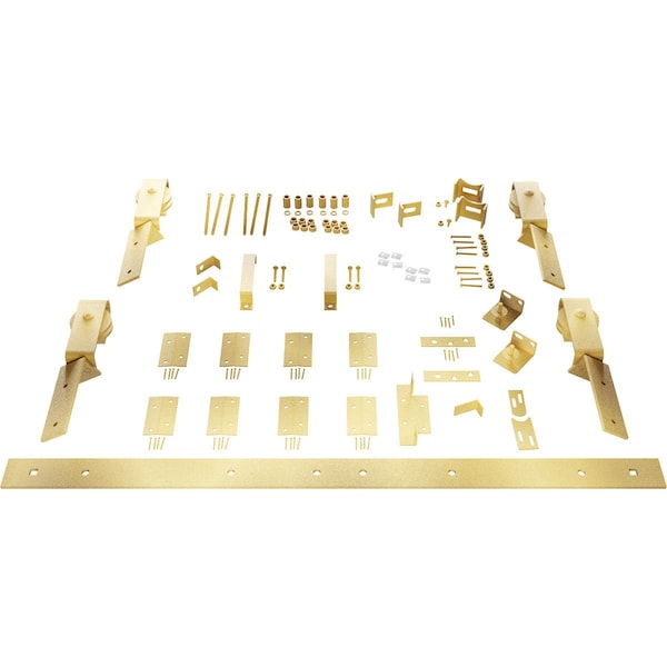 Barnfold J-Strap 4-Door Hardware Set for 1 1/4" to 1 3/8" Doors with 96" Track, Jacob's Gold