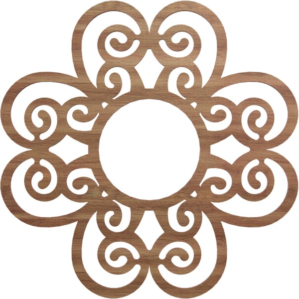 Available in paint-grade, oak, cherry, alder, walnut, hickory, and birch allowing for great versatile and durable usage. The natural wood tones evoke luxury and sophistication in any space. You can leave your design mark with unique and inspiring effects on your walls, ceilings and more. Our easy-to-install wood medallions can turn a fixture or ceiling fan into a work of art in no time at all. Our distinctive pierced wood medallions add instant value to your home and stand apart from everything else on the market.Clean and modern designs, expertly laser cut wood veneer over a MDF core.An artistic, complementary piece to any light fixture or use as charming wall decor Available in paint grade and 6 beautiful wood finishes to coordinate with every design style One-of-a-kind, wood finish offers exquisite warmth and detail in geometric and scroll patterns Smooth, consistent surface with beautiful grain patterns