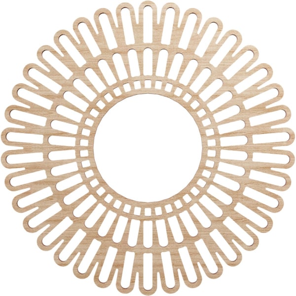 Available in paint-grade, oak, cherry, alder, walnut, hickory, and birch allowing for great versatile and durable usage. The natural wood tones evoke luxury and sophistication in any space. You can leave your design mark with unique and inspiring effects on your walls, ceilings and more. Our easy-to-install wood medallions can turn a fixture or ceiling fan into a work of art in no time at all. Our distinctive pierced wood medallions add instant value to your home and stand apart from everything else on the market.Clean and modern designs, expertly laser cut wood veneer over a MDF core.An artistic, complementary piece to any light fixture or use as charming wall decor Available in paint grade and 6 beautiful wood finishes to coordinate with every design style One-of-a-kind, wood finish offers exquisite warmth and detail in geometric and scroll patterns Smooth, consistent surface with beautiful grain patterns