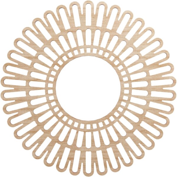 Available in paint-grade, oak, cherry, alder, walnut, hickory, and birch allowing for great versatile and durable usage. The natural wood tones evoke luxury and sophistication in any space. You can leave your design mark with unique and inspiring effects on your walls, ceilings and more. Our easy-to-install wood medallions can turn a fixture or ceiling fan into a work of art in no time at all. Our distinctive pierced wood medallions add instant value to your home and stand apart from everything else on the market.Clean and modern designs, expertly laser cut wood veneer over a MDF core.An artistic, complementary piece to any light fixture or use as charming wall decor Available in paint grade and 6 beautiful wood finishes to coordinate with every design style One-of-a-kind, wood finish offers exquisite warmth and detail in geometric and scroll patterns Smooth, consistent surface with beautiful grain patterns