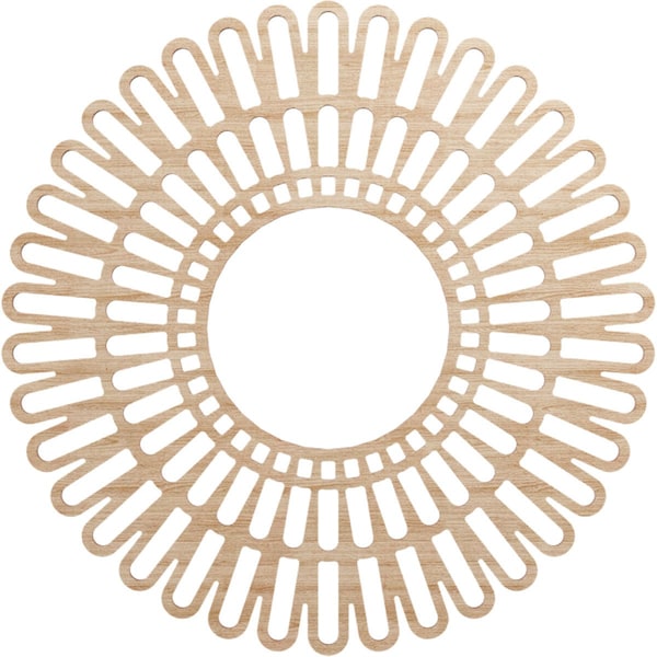 Available in paint-grade, oak, cherry, alder, walnut, hickory, and birch allowing for great versatile and durable usage. The natural wood tones evoke luxury and sophistication in any space. You can leave your design mark with unique and inspiring effects on your walls, ceilings and more. Our easy-to-install wood medallions can turn a fixture or ceiling fan into a work of art in no time at all. Our distinctive pierced wood medallions add instant value to your home and stand apart from everything else on the market.Clean and modern designs, expertly laser cut wood veneer over a MDF core.An artistic, complementary piece to any light fixture or use as charming wall decor Available in paint grade and 6 beautiful wood finishes to coordinate with every design style One-of-a-kind, wood finish offers exquisite warmth and detail in geometric and scroll patterns Smooth, consistent surface with beautiful grain patterns