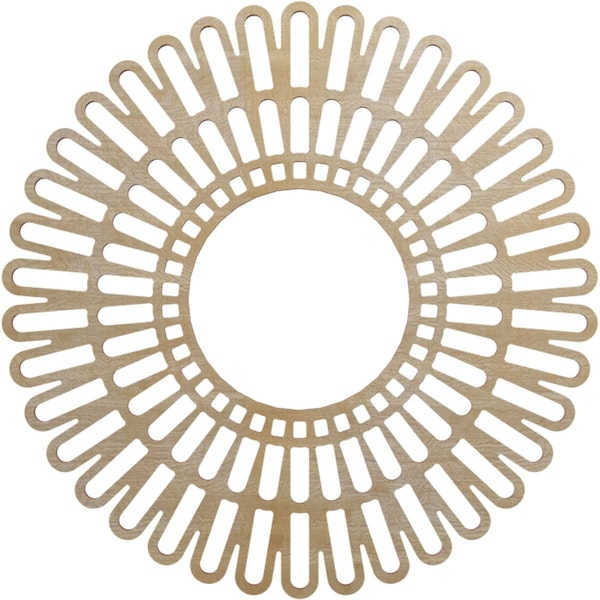 Available in paint-grade, oak, cherry, alder, walnut, hickory, and birch allowing for great versatile and durable usage. The natural wood tones evoke luxury and sophistication in any space. You can leave your design mark with unique and inspiring effects on your walls, ceilings and more. Our easy-to-install wood medallions can turn a fixture or ceiling fan into a work of art in no time at all. Our distinctive pierced wood medallions add instant value to your home and stand apart from everything else on the market.Clean and modern designs, expertly laser cut wood veneer over a MDF core.An artistic, complementary piece to any light fixture or use as charming wall decor Available in paint grade and 6 beautiful wood finishes to coordinate with every design style One-of-a-kind, wood finish offers exquisite warmth and detail in geometric and scroll patterns Smooth, consistent surface with beautiful grain patterns