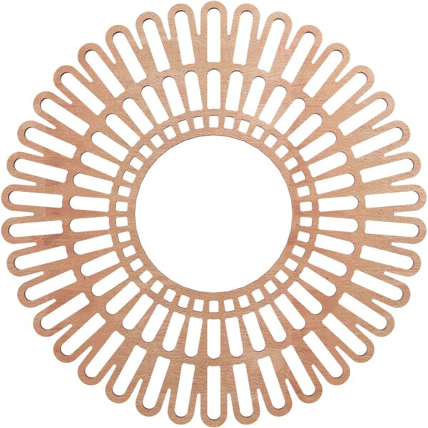 Available in paint-grade, oak, cherry, alder, walnut, hickory, and birch allowing for great versatile and durable usage. The natural wood tones evoke luxury and sophistication in any space. You can leave your design mark with unique and inspiring effects on your walls, ceilings and more. Our easy-to-install wood medallions can turn a fixture or ceiling fan into a work of art in no time at all. Our distinctive pierced wood medallions add instant value to your home and stand apart from everything else on the market.Clean and modern designs, expertly laser cut wood veneer over a MDF core.An artistic, complementary piece to any light fixture or use as charming wall decor Available in paint grade and 6 beautiful wood finishes to coordinate with every design style One-of-a-kind, wood finish offers exquisite warmth and detail in geometric and scroll patterns Smooth, consistent surface with beautiful grain patterns