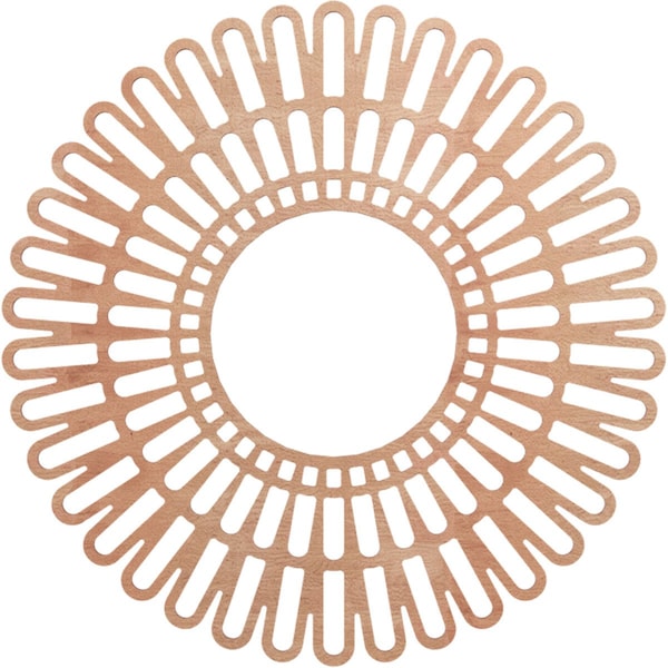 Available in paint-grade, oak, cherry, alder, walnut, hickory, and birch allowing for great versatile and durable usage. The natural wood tones evoke luxury and sophistication in any space. You can leave your design mark with unique and inspiring effects on your walls, ceilings and more. Our easy-to-install wood medallions can turn a fixture or ceiling fan into a work of art in no time at all. Our distinctive pierced wood medallions add instant value to your home and stand apart from everything else on the market.Clean and modern designs, expertly laser cut wood veneer over a MDF core.An artistic, complementary piece to any light fixture or use as charming wall decor Available in paint grade and 6 beautiful wood finishes to coordinate with every design style One-of-a-kind, wood finish offers exquisite warmth and detail in geometric and scroll patterns Smooth, consistent surface with beautiful grain patterns