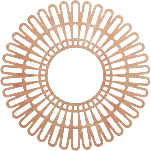 Available in paint-grade, oak, cherry, alder, walnut, hickory, and birch allowing for great versatile and durable usage. The natural wood tones evoke luxury and sophistication in any space. You can leave your design mark with unique and inspiring effects on your walls, ceilings and more. Our easy-to-install wood medallions can turn a fixture or ceiling fan into a work of art in no time at all. Our distinctive pierced wood medallions add instant value to your home and stand apart from everything else on the market.Clean and modern designs, expertly laser cut wood veneer over a MDF core.An artistic, complementary piece to any light fixture or use as charming wall decor Available in paint grade and 6 beautiful wood finishes to coordinate with every design style One-of-a-kind, wood finish offers exquisite warmth and detail in geometric and scroll patterns Smooth, consistent surface with beautiful grain patterns