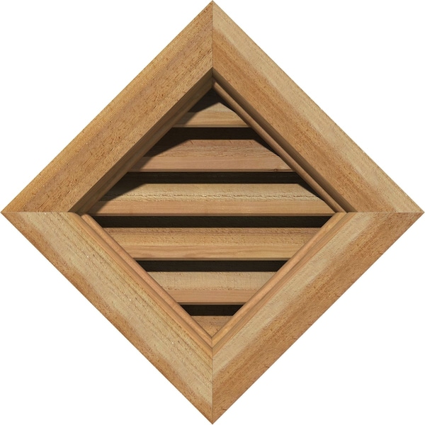 Diamond Gable Vent Functional, Western Red Cedar Gable Vent w/ Brick Mould Face Frame, 20"W x 20"H