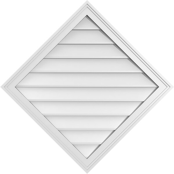 Diamond Surface Mount PVC Gable Vent: Functional, w/ 2"W x 1-1/2"P Brickmould Frame, 34"W x 34"H
