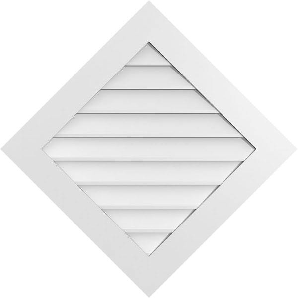 Diamond Surface Mount PVC Gable Vent: Functional, w/ 3-1/2"W x 1"P Standard Frame, 36"W x 36"H