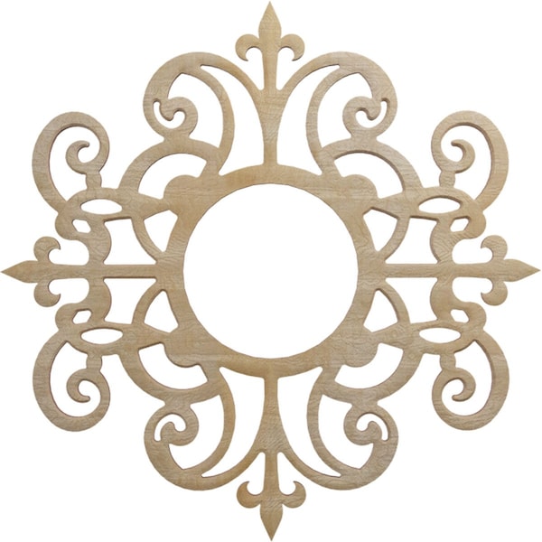 Available in paint-grade, oak, cherry, alder, walnut, hickory, and birch allowing for great versatile and durable usage. The natural wood tones evoke luxury and sophistication in any space. You can leave your design mark with unique and inspiring effects on your walls, ceilings and more. Our easy-to-install wood medallions can turn a fixture or ceiling fan into a work of art in no time at all. Our distinctive pierced wood medallions add instant value to your home and stand apart from everything else on the market.Clean and modern designs, expertly laser cut wood veneer over a MDF core.An artistic, complementary piece to any light fixture or use as charming wall decor Available in paint grade and 6 beautiful wood finishes to coordinate with every design style One-of-a-kind, wood finish offers exquisite warmth and detail in geometric and scroll patterns Smooth, consistent surface with beautiful grain patterns