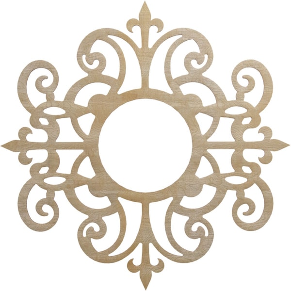 Available in paint-grade, oak, cherry, alder, walnut, hickory, and birch allowing for great versatile and durable usage. The natural wood tones evoke luxury and sophistication in any space. You can leave your design mark with unique and inspiring effects on your walls, ceilings and more. Our easy-to-install wood medallions can turn a fixture or ceiling fan into a work of art in no time at all. Our distinctive pierced wood medallions add instant value to your home and stand apart from everything else on the market.Clean and modern designs, expertly laser cut wood veneer over a MDF core.An artistic, complementary piece to any light fixture or use as charming wall decor Available in paint grade and 6 beautiful wood finishes to coordinate with every design style One-of-a-kind, wood finish offers exquisite warmth and detail in geometric and scroll patterns Smooth, consistent surface with beautiful grain patterns