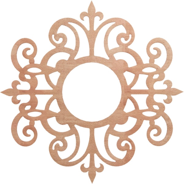 Available in paint-grade, oak, cherry, alder, walnut, hickory, and birch allowing for great versatile and durable usage. The natural wood tones evoke luxury and sophistication in any space. You can leave your design mark with unique and inspiring effects on your walls, ceilings and more. Our easy-to-install wood medallions can turn a fixture or ceiling fan into a work of art in no time at all. Our distinctive pierced wood medallions add instant value to your home and stand apart from everything else on the market.Clean and modern designs, expertly laser cut wood veneer over a MDF core.An artistic, complementary piece to any light fixture or use as charming wall decor Available in paint grade and 6 beautiful wood finishes to coordinate with every design style One-of-a-kind, wood finish offers exquisite warmth and detail in geometric and scroll patterns Smooth, consistent surface with beautiful grain patterns