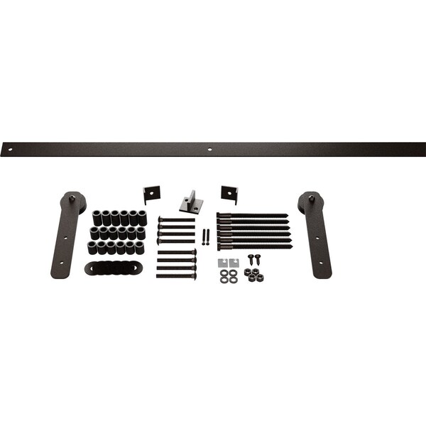 - Set includes: 2 Economy Series straight strap hangers, 2 track stops, 2 anti-jump blocks, floor T-guide, and all necessary bolts, screws, spacers, etc. for one door.