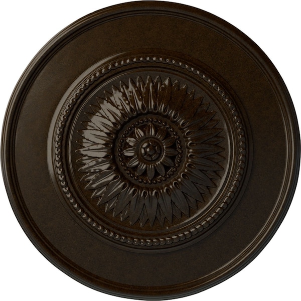 Floral Ceiling Medallion, Hand-Painted Bronze, 23 1/2"OD x 2 3/4"P