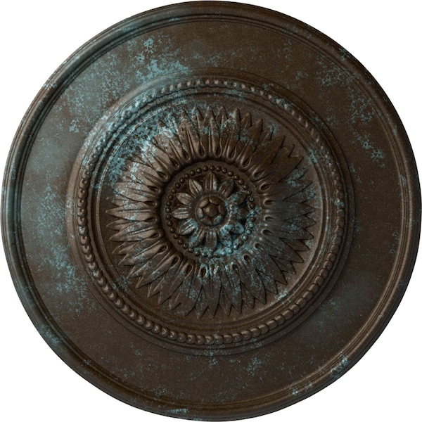 Floral Ceiling Medallion, Hand-Painted Bronze Blue Patina, 23 1/2"OD x 2 3/4"P