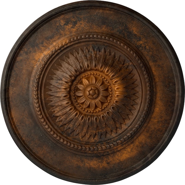 Floral Ceiling Medallion, Hand-Painted Rust, 23 1/2"OD x 2 3/4"P