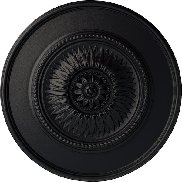 Floral Ceiling Medallion, Hand-Painted Steel Gray, 23 1/2"OD x 2 3/4"P