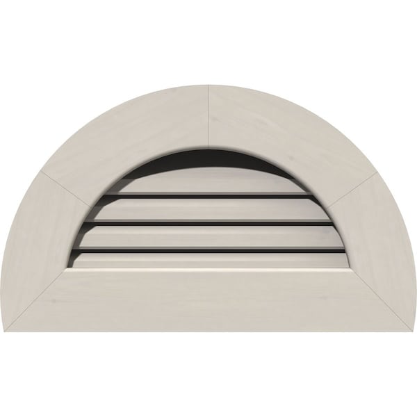 Half Round Gable Vent Primed, Functional, Pine Gable Vent w/ 1" x 4" Flat Trim Frame, 30"W x 15"H