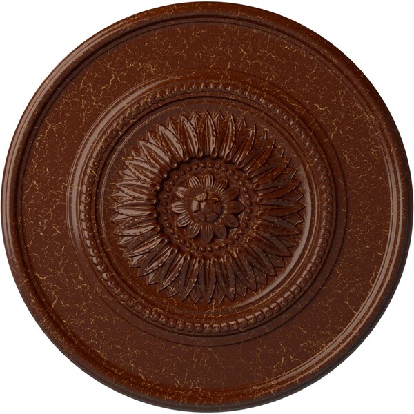 Large Floral Ceiling Medallion, Hand-Painted Burnished Mahogany Crackle, 41 1/8"OD x 2 1/2"P
