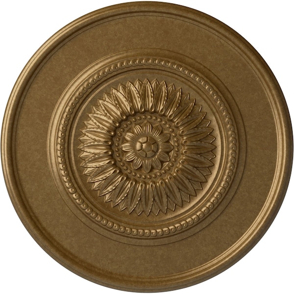 Large Floral Ceiling Medallion, Hand-Painted Pale Gold, 41 1/8"OD x 2 1/2"P