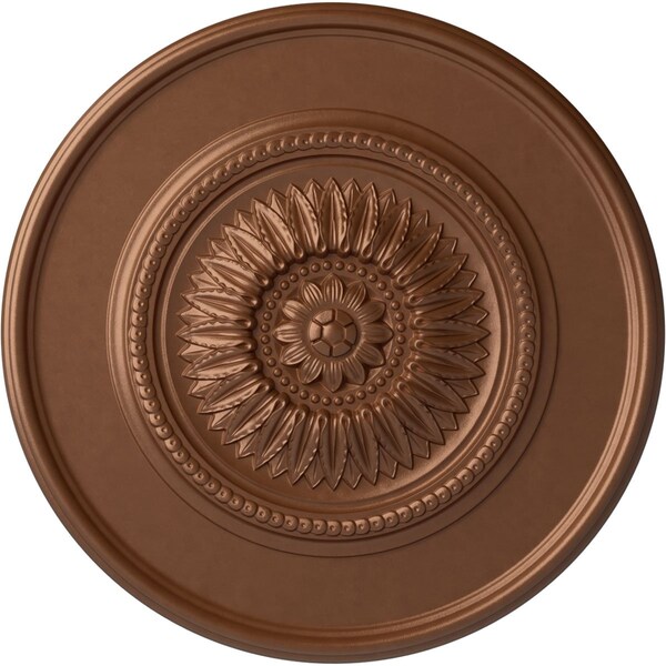 Large Floral Ceiling Medallion, Hand-Painted Polished Copper, 41 1/8"OD x 2 1/2"P