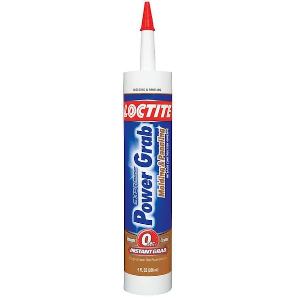 Loctite Power Grab Express Molding & Paneling Construction Adhesive is a premium quality, high strength, gap-filling adhesive. It will bond paneling, drywall, molding, corkboard, ridged PVC and hardboard to a variety of surfaces. It has a very low odor, and requires only soap and water to clean up. This makes it safe, easy to use, and environmentally friendly.