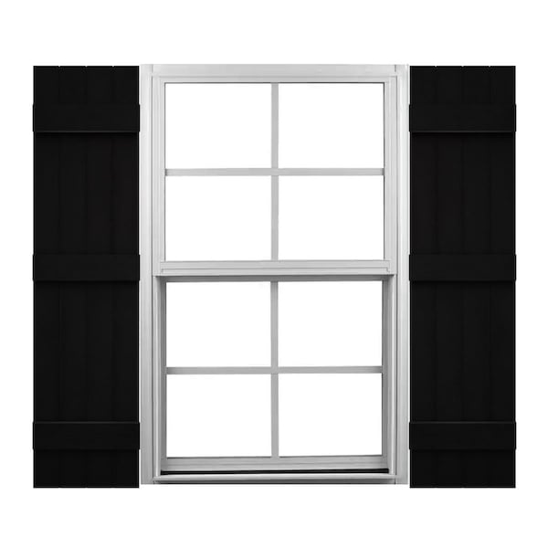 Although the name board and batten makes you think wood, as they were originally made from wood boards, they are often made today in inexpensive and durable vinyl. Exterior vinyl shutters hold up strongly to cracking or rotting from sun or water damage, and require less maintenance than traditional wood shutters. Home improvement stores offer a wide variety of board and batten shutters. Widths of these types of house shutters usually vary more than louvered or raised panel shutters, and really allow you to achieve a unique look through the different sizes and styles. Some board and batten shutters have spaces between the vertical boards, to allow sunlight and air to pass through. The number of vertical boards typically ranges between two and five, with a board crossing these horizontally at the top and bottom. They are also available curved at the top for rounded window openings.
