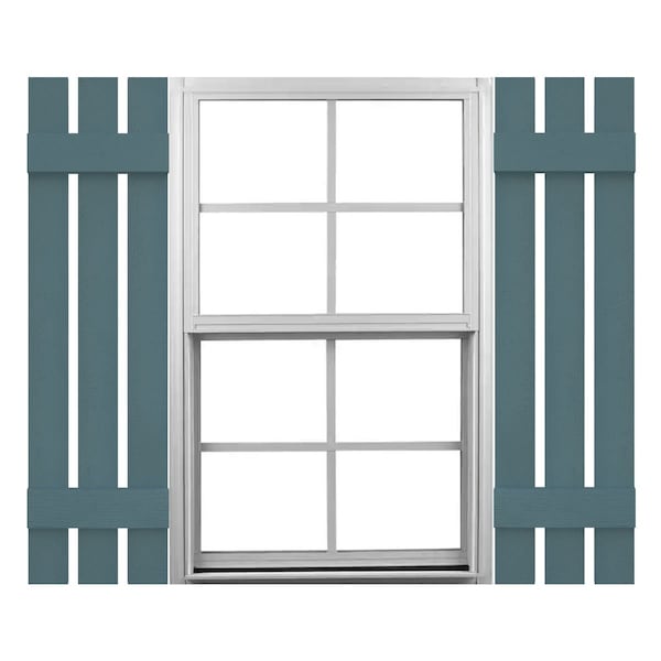 Although the name board and batten makes you think wood, as they were originally made from wood boards, they are often made today in inexpensive and durable vinyl. Exterior vinyl shutters hold up strongly to cracking or rotting from sun or water damage, and require less maintenance than traditional wood shutters. Home improvement stores offer a wide variety of board and batten shutters. Widths of these types of house shutters usually vary more than louvered or raised panel shutters, and really allow you to achieve a unique look through the different sizes and styles. Some board and batten shutters have spaces between the vertical boards, to allow sunlight and air to pass through. The number of vertical boards typically ranges between two and five, with a board crossing these horizontally at the top and bottom. They are also available curved at the top for rounded window openings.