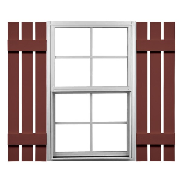 Although the name board and batten makes you think wood, as they were originally made from wood boards, they are often made today in inexpensive and durable vinyl. Exterior vinyl shutters hold up strongly to cracking or rotting from sun or water damage, and require less maintenance than traditional wood shutters. Home improvement stores offer a wide variety of board and batten shutters. Widths of these types of house shutters usually vary more than louvered or raised panel shutters, and really allow you to achieve a unique look through the different sizes and styles. Some board and batten shutters have spaces between the vertical boards, to allow sunlight and air to pass through. The number of vertical boards typically ranges between two and five, with a board crossing these horizontally at the top and bottom. They are also available curved at the top for rounded window openings.